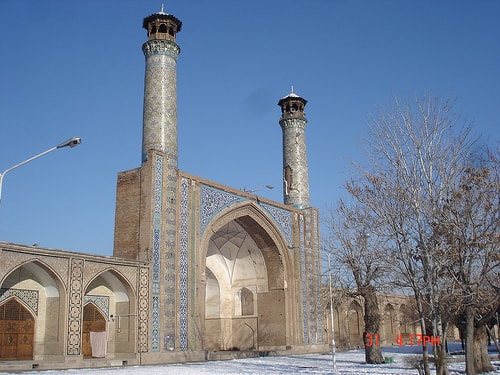 A morning visit to the very old Jameh Mosque where the brick and tile work was first documented by the USA Iranologist Arthur Upham Pope whose tomb we pass on the banks of the Zayandeh Rud . Across the river at Julfa we enter the Armenian quarter where we see the Armenian Cathedral and the adjacent museum. Lunch at an Armenian restaurant and free time in the afternoon.